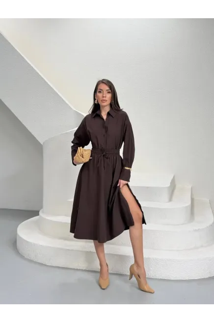 Yırtmaç Detay Etek ve Gömlek Alt Üst Takım Kahve