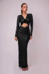 Zara pulpayet kumaş içi full astarlı gizli fermuar detaylı omuz vatkalı Maxi boy elbise