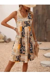 Kadın Sıfır Kol Yuvarlak Yaka çiçek Desenli Süprem Elbise