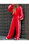 Üç İplik Şardonlu Yanları Şerit Takım Kırmızı