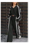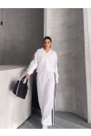 Üç İplik Şardonlu Yanları Şerit Takım Beyaz