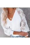 Yumoş Kumaş Beyaz Güpürlü Dantel Aksesuarlı Bluz
